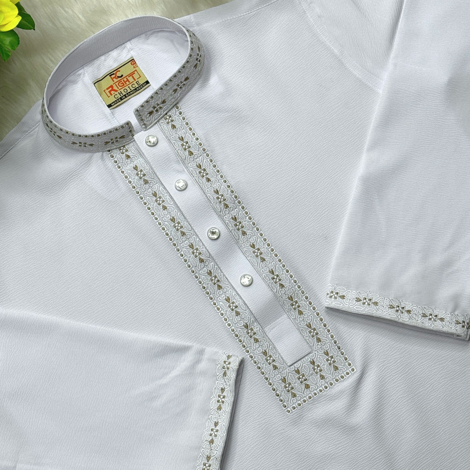 🔹এই পাঞ্জাবি টি জাফরান কাপড়ের তৈরি।